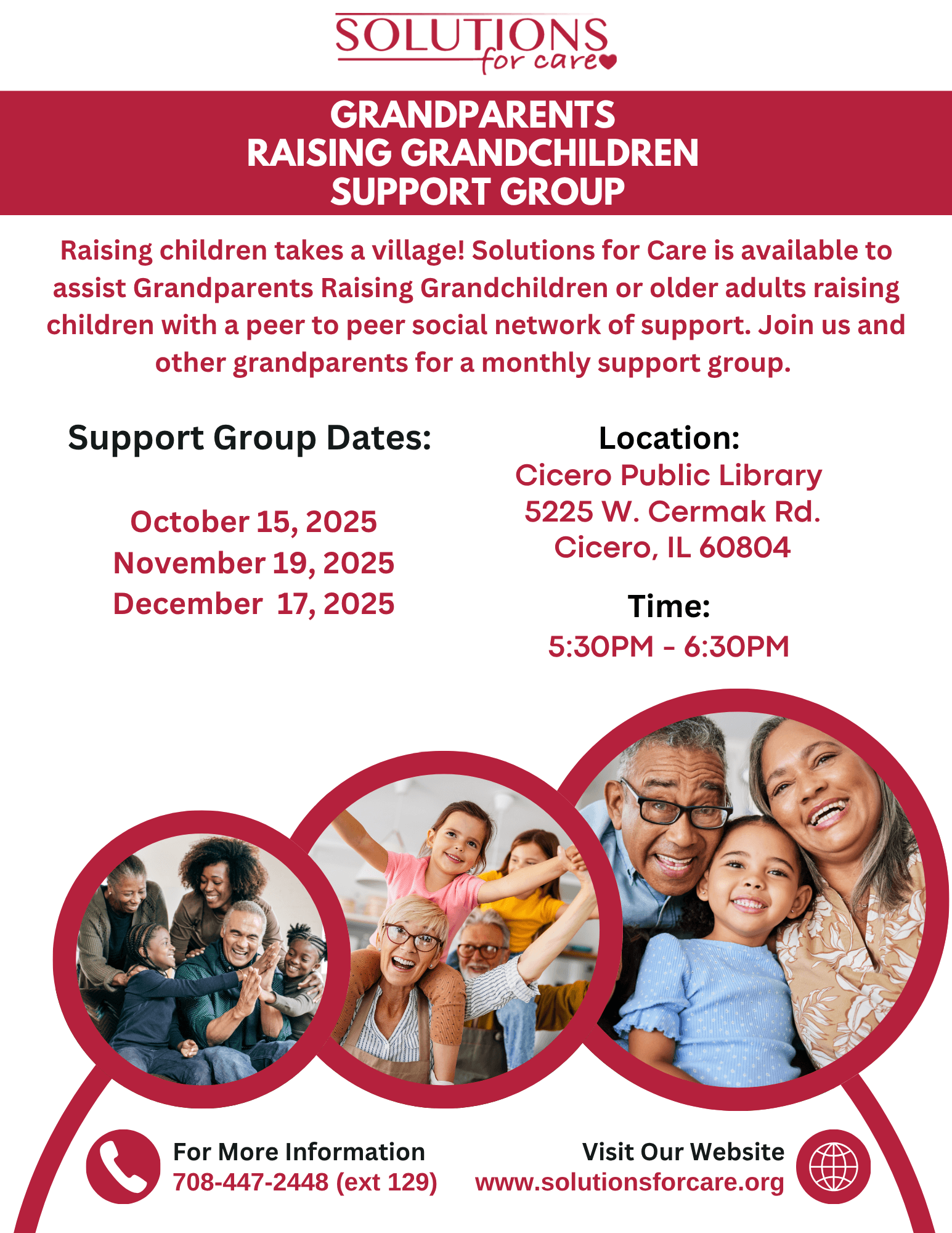 Raising children takes a village! Solutions for Care is available to assist Grandparents Raising Grandchildren or older adults raising children with a peer to peer social network of support. Join us and other grandparents for a monthly support group.