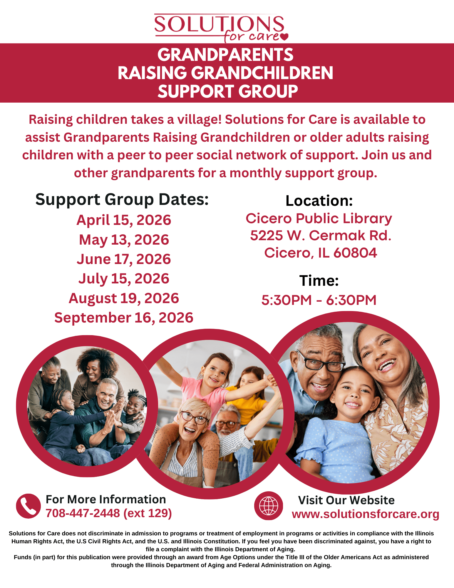 Raising children takes a village! Solutions for Care is available to assist Grandparents Raising Grandchildren or older adults raising children with a peer-to-peer social network of support. Join other grandparents for a monthly support group.